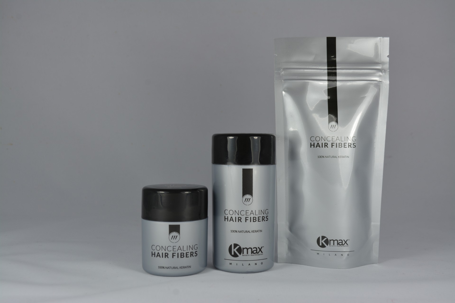 Contrairement aux autres marques de poudres densifiantes, K-Max est la seule poudre de cheveux 100% Naturelle : 99,5% Kératine, 0,5% Silice organique. La coloration des fibres provient de la couleur naturelle de la kératine. Aucun ajout de pigment ou teinture.