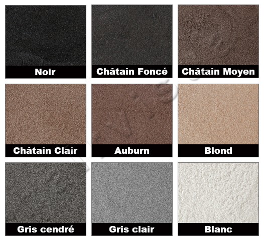 | COULEUR | Branco, Castaño Claro, Castaño Medio, Castaño Oscuro, Castaño Ramato, Gris Claro, Gris Oscuro, Negro, Rubio |