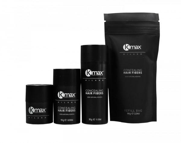 Las fibras de reconstrucción de K-Max instantáneamente cubren las áreas de calvicie y cabello delgado.